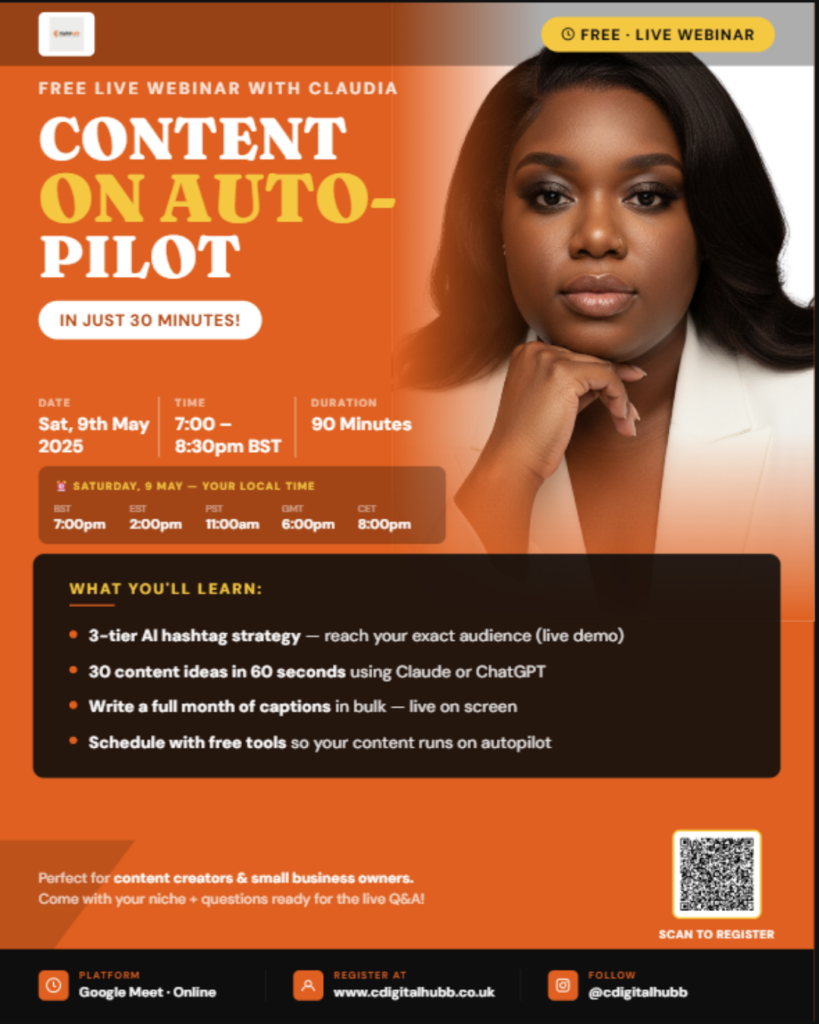 Cdigitalhubb is the AI-powered content that Agency helps UK small businesses and creators build scroll-stopping presence without the agency price tag or the burnout.