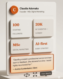 Hi My name is Claudia, I’m the founder of cdigitalhubb where social media meets strategy, and strategy meets results.
